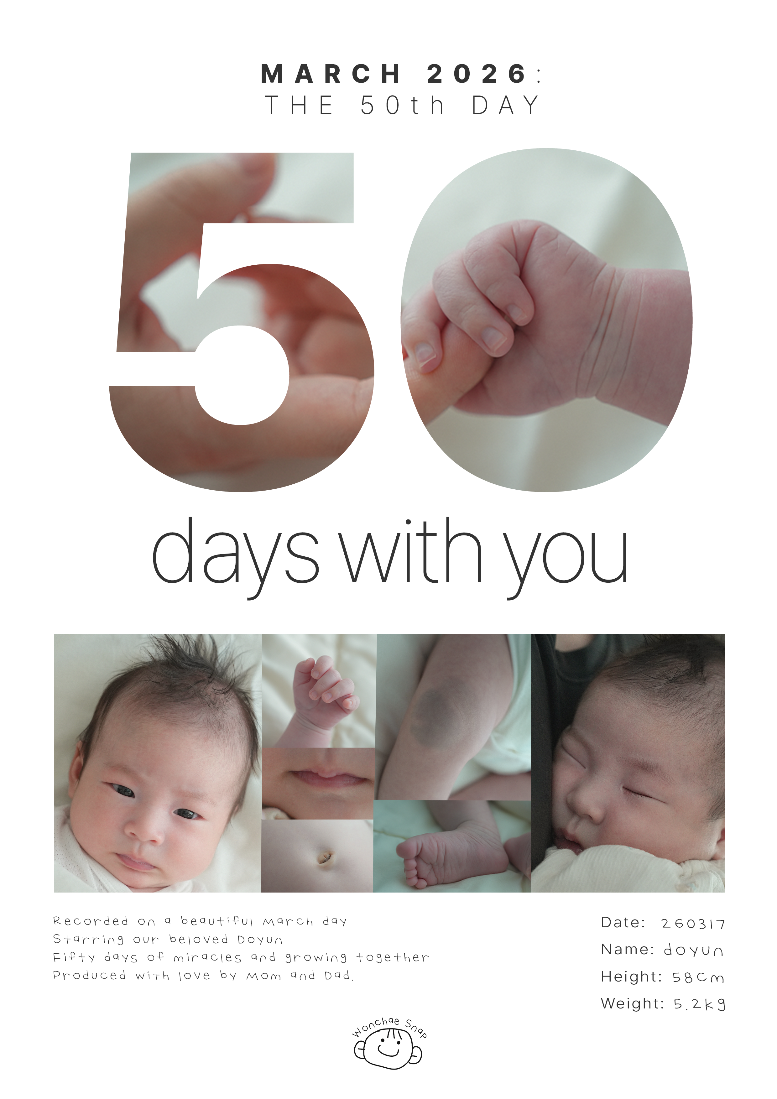 가장 작고 가장 빠르게 지나가는 시간을 기록합니다. 손의 크기, 눈의 떨림, 처음 세상을 바라보는 얼굴까지 지금의 순간을 오래 남길 수 있도록 하나의 포스터로 함께 담아드립니다.
